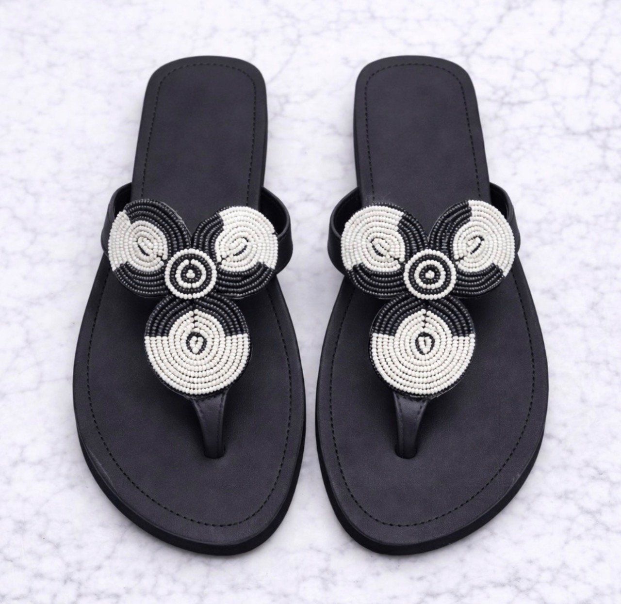 Soigneusement fabriqué avec des perles de rocaille tchèques, du cuir et une semelle en caoutchouc.