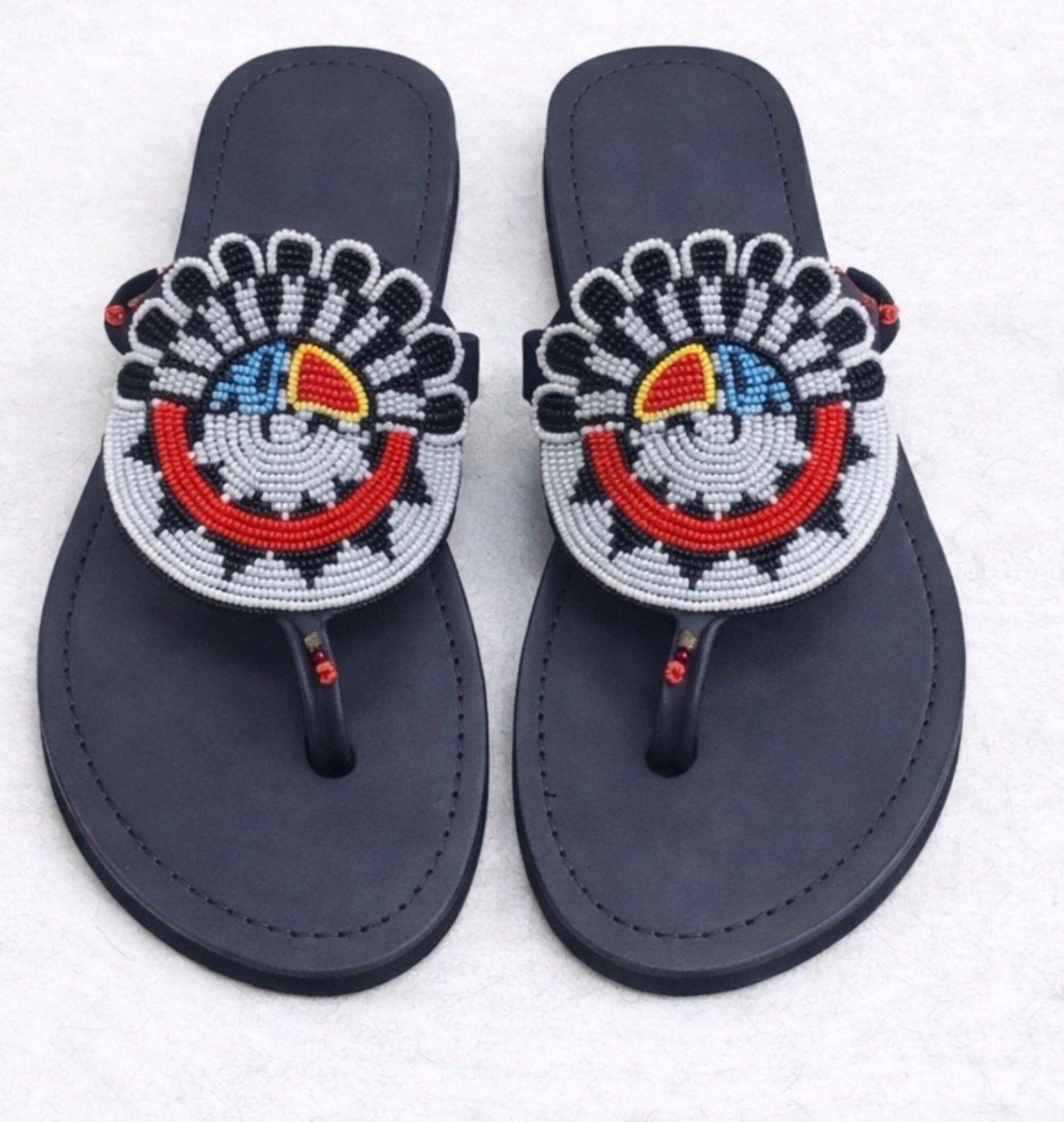 Soigneusement fabriqué avec des perles de rocaille tchèques, du cuir et une semelle en caoutchouc.